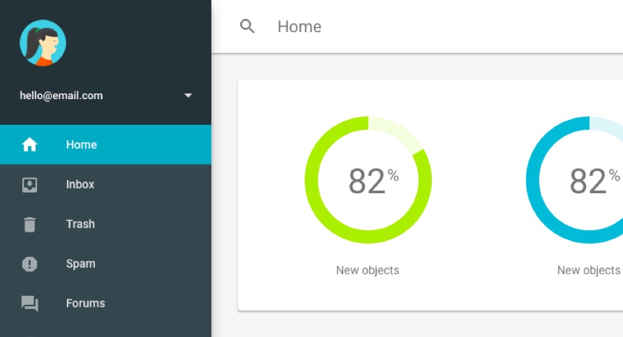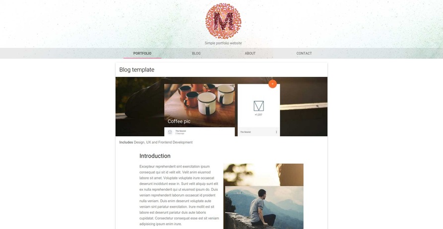 A modern and clean looking template for a portfolio/blog build with Material Design Lite. Included are a top nav bar that comes with the waterfall header component, cards to display different types of content and a footer.